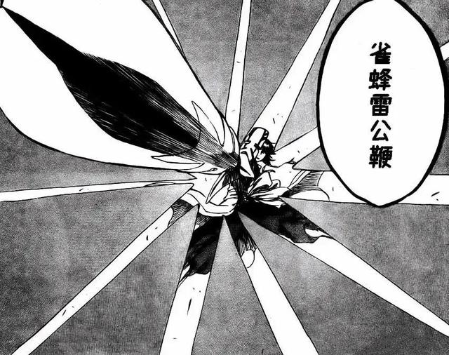 卍解:雀蜂雷公鞭 卍解时右臂变出附着如同女皇蜂尾的巨大的导弹的rpg火箭发射器装置(能力也就是发射导弹),从始解的二击必杀变为一击必杀,攻击范围极大且破坏力极强 威力就等同于核弹,等等!!这不就是核弹吗?! 。